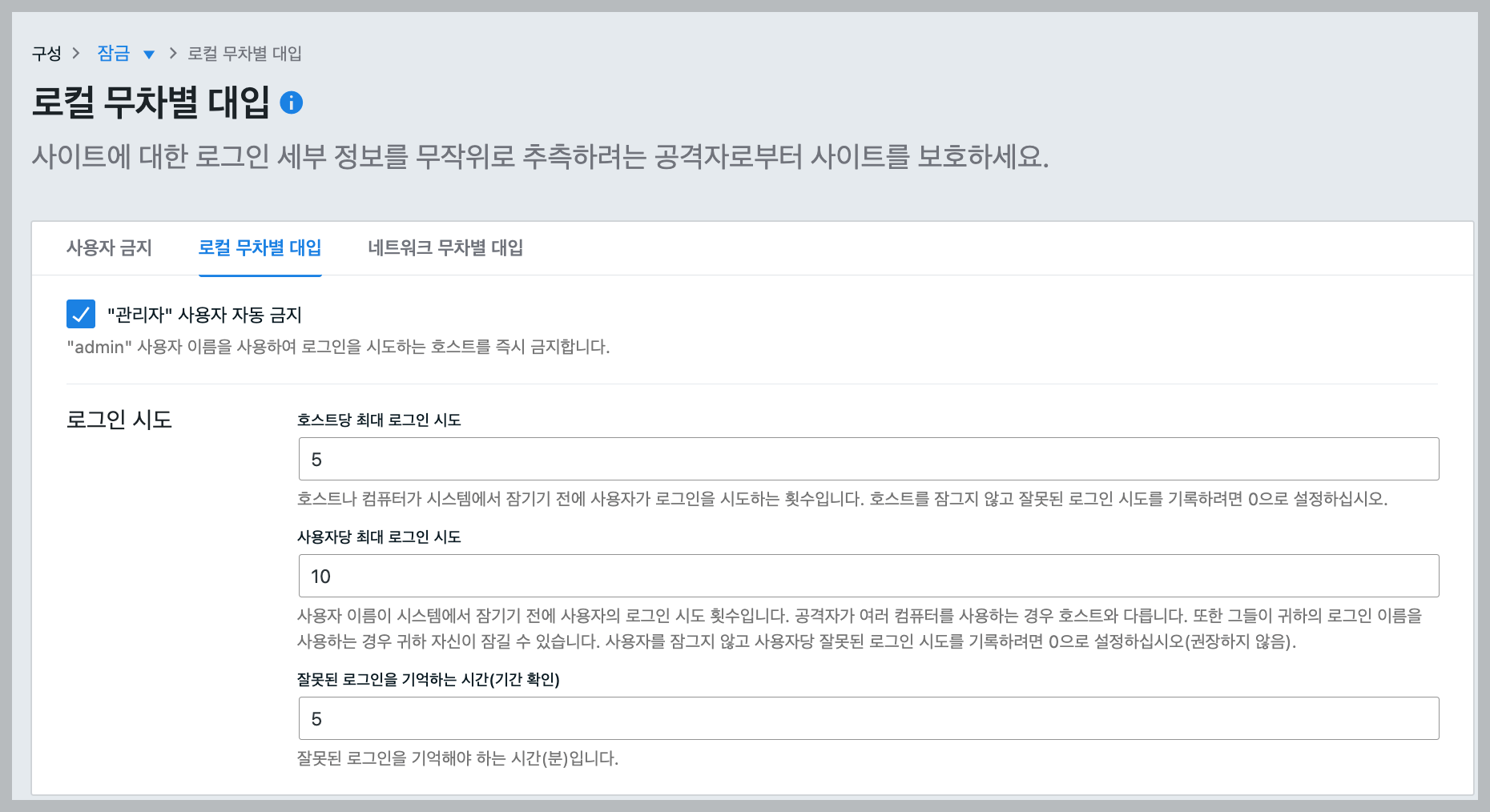 2. 무차별 대입 공격 예방 - Local Brute Force, Network Brute Force 설정