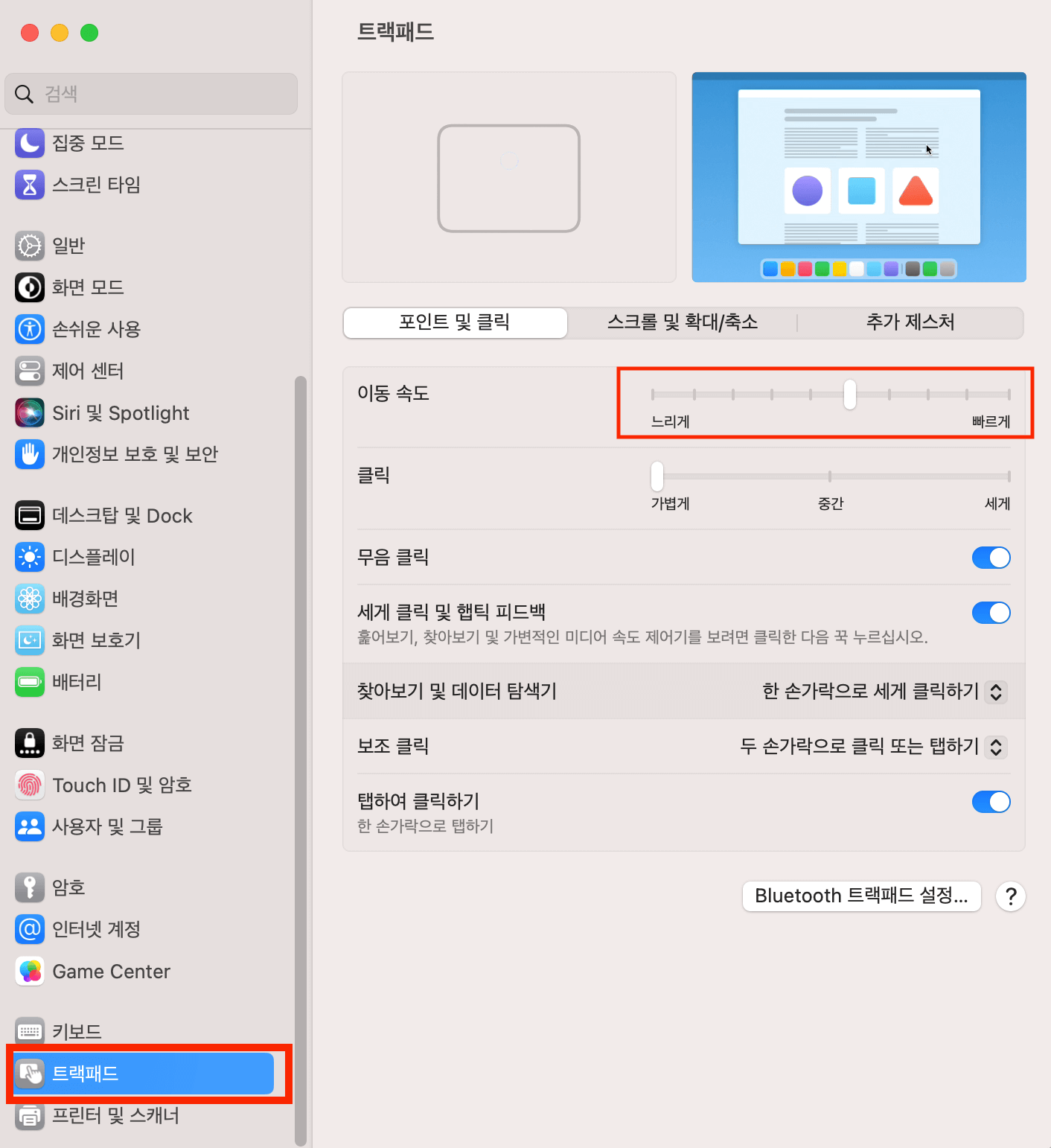 방법 1) 시스템 설정 ▶ 트랙패드(이동 속도 조절해보기)
